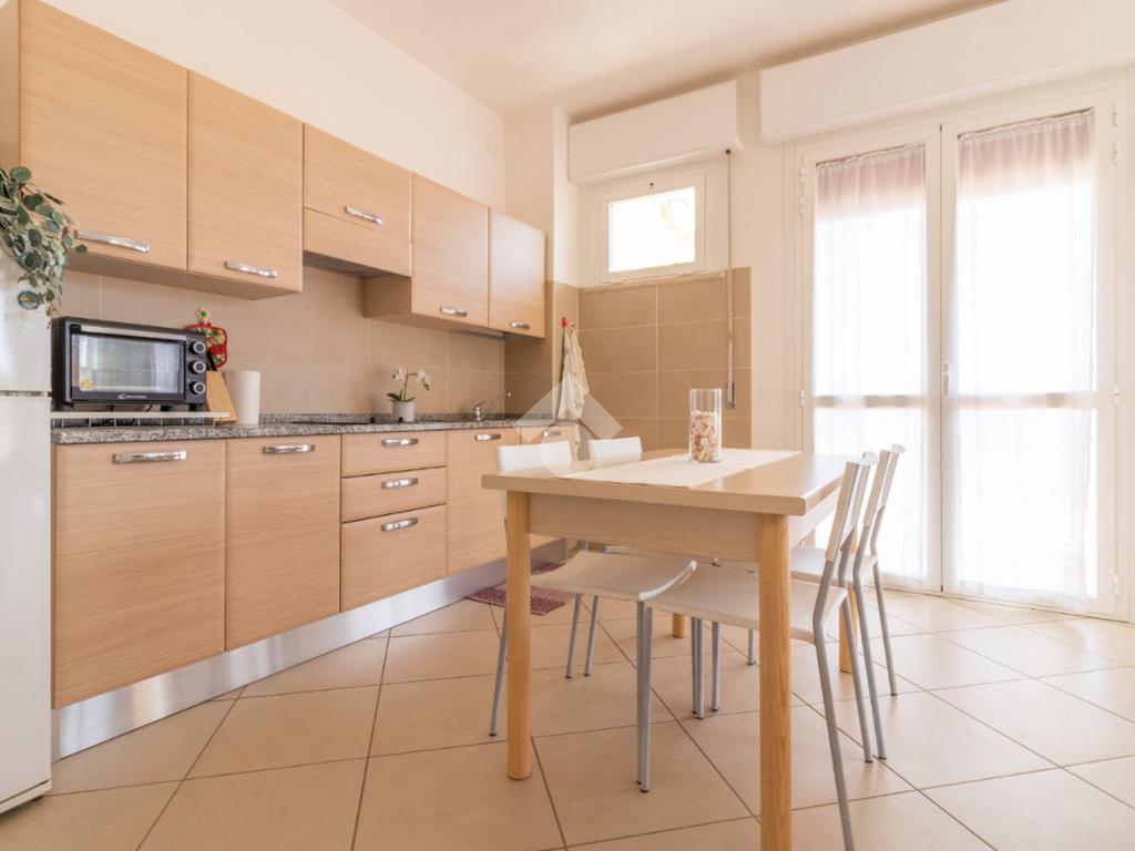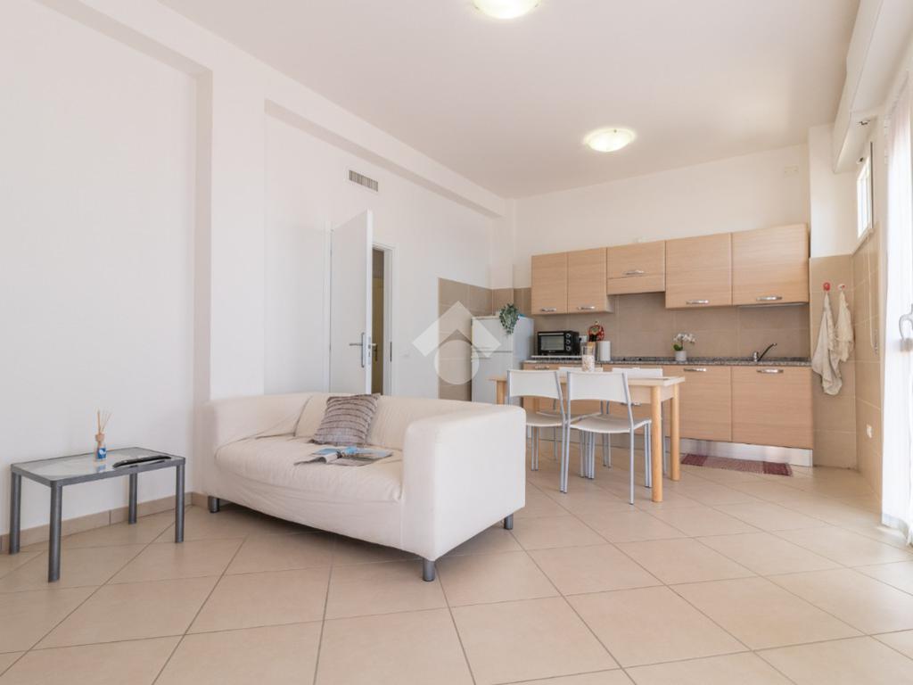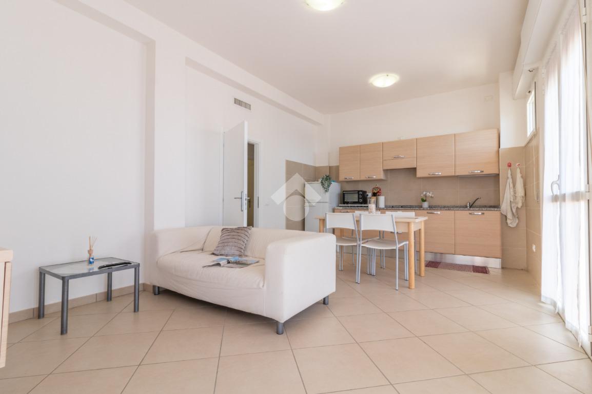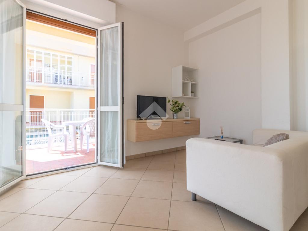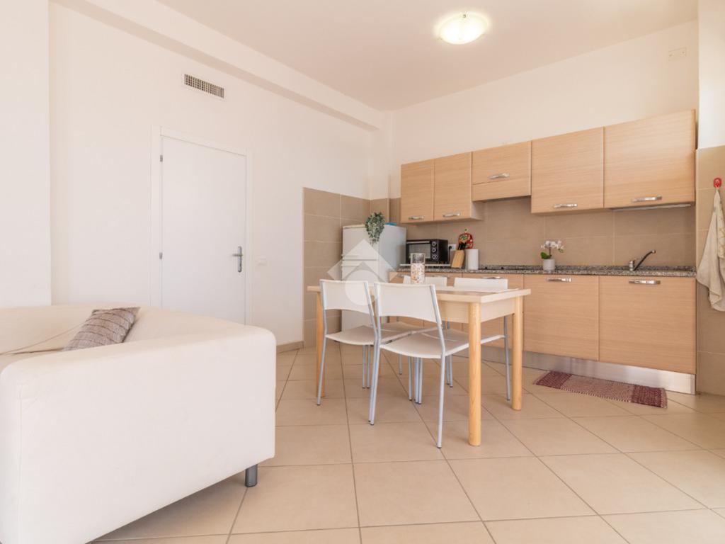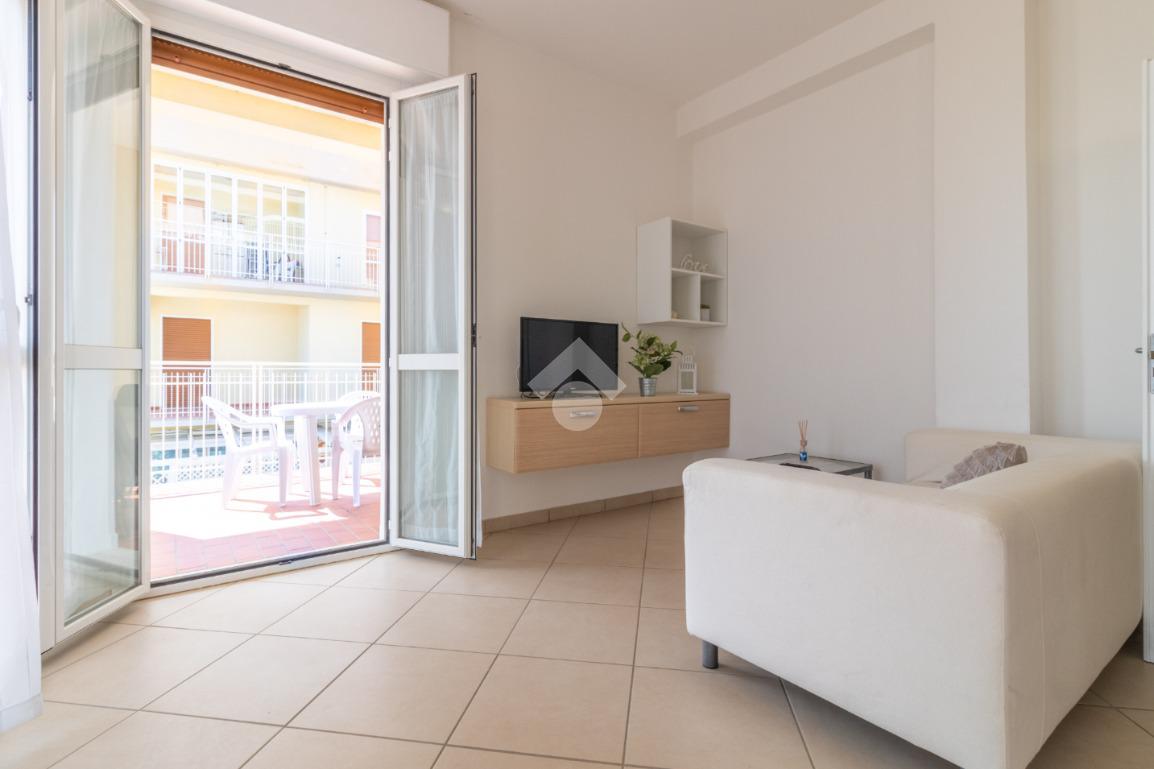 L'immobile è composto da soggiorno con angolo cottura adiacente al terrazzo, camera matrimoniale, camera singola e bagno finestrato con box doccia.