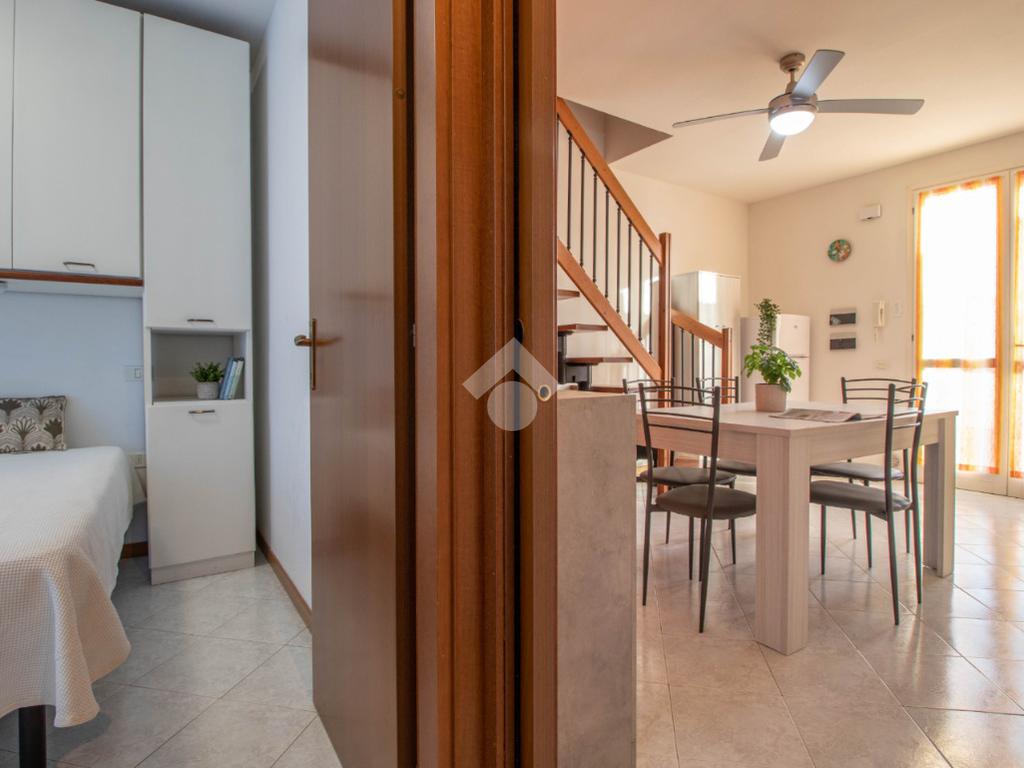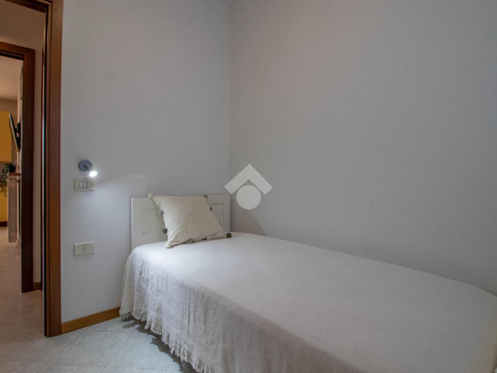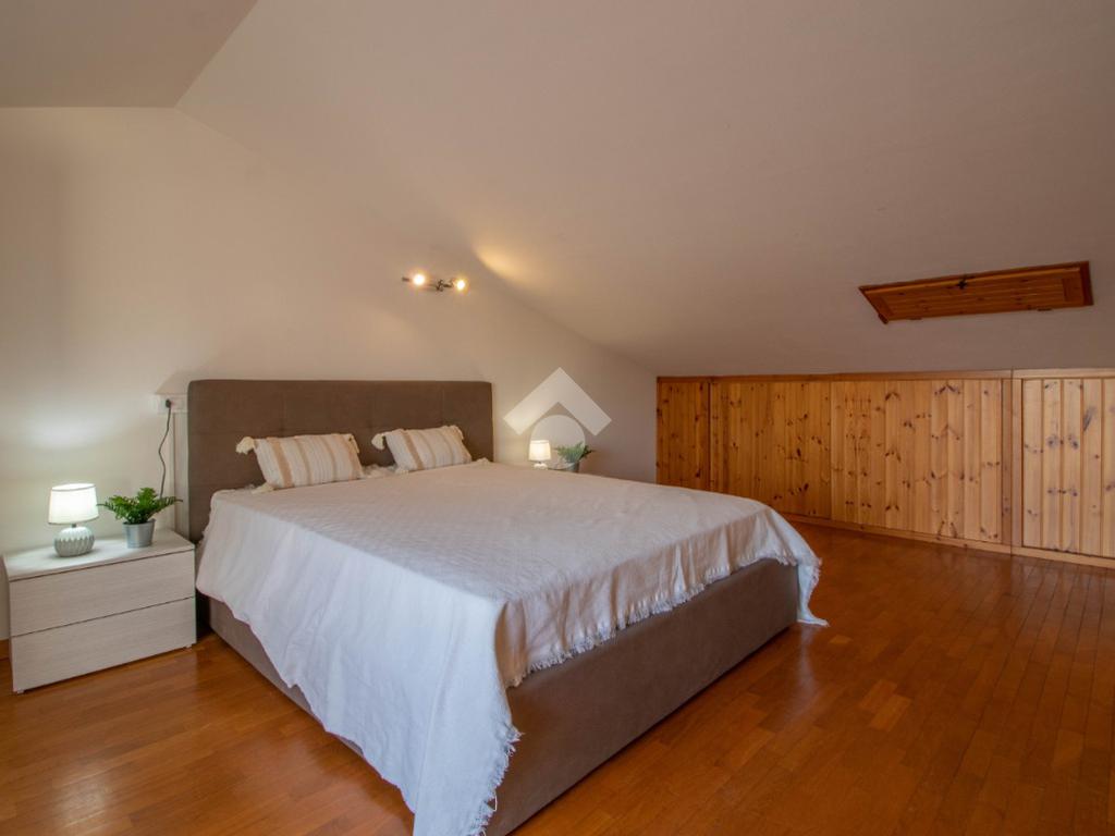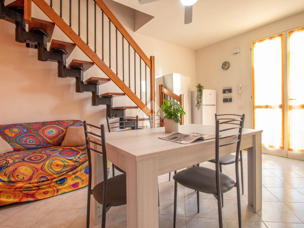 Soluzione al primo piano con giardino e posto auto, composta da soggiorno con angolo cottura e terrazzo, camera matrimoniale, camera singola e bagno con box doccia. Tramite scala interna raggiungiamo il secondo piano composto da una terza camera da letto con letto matrimoniale e terrazzo abitabile.