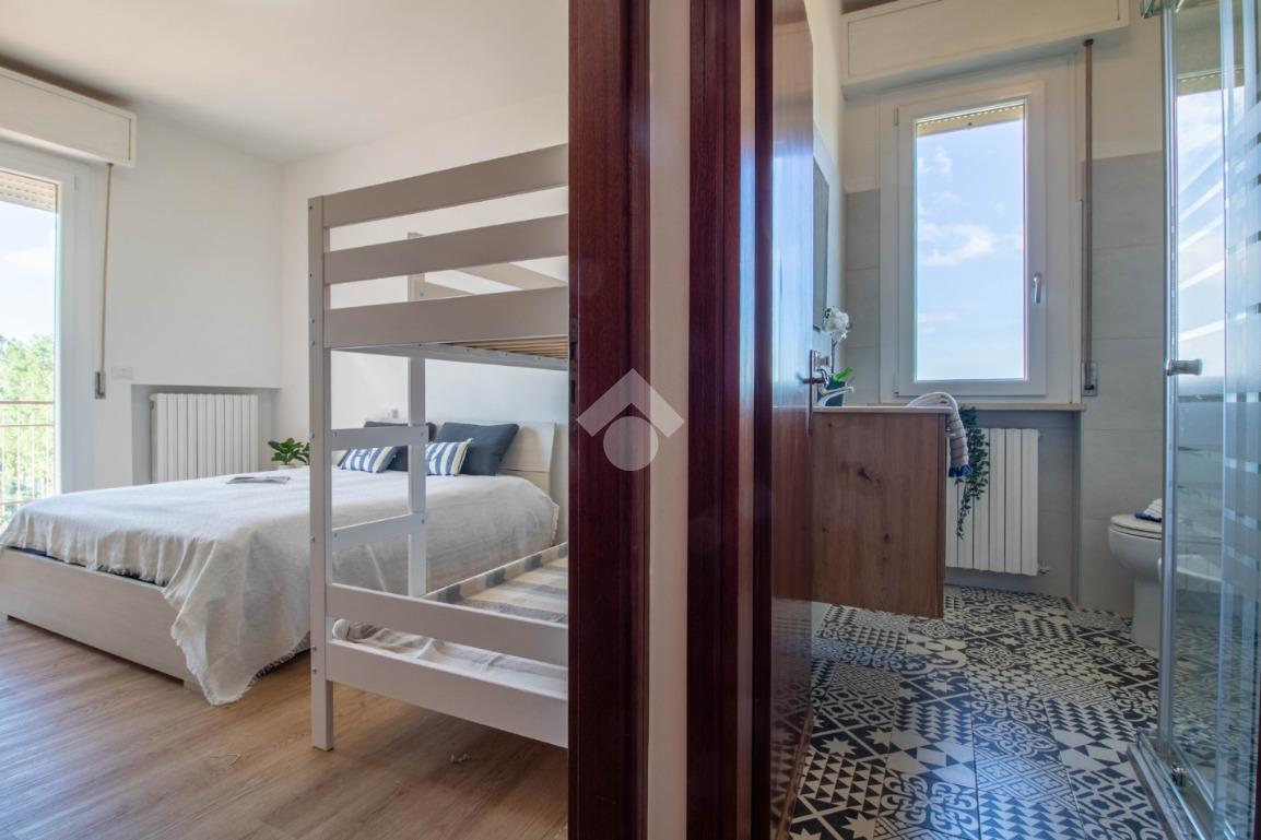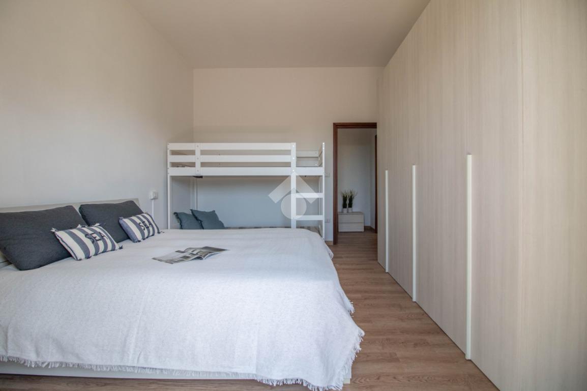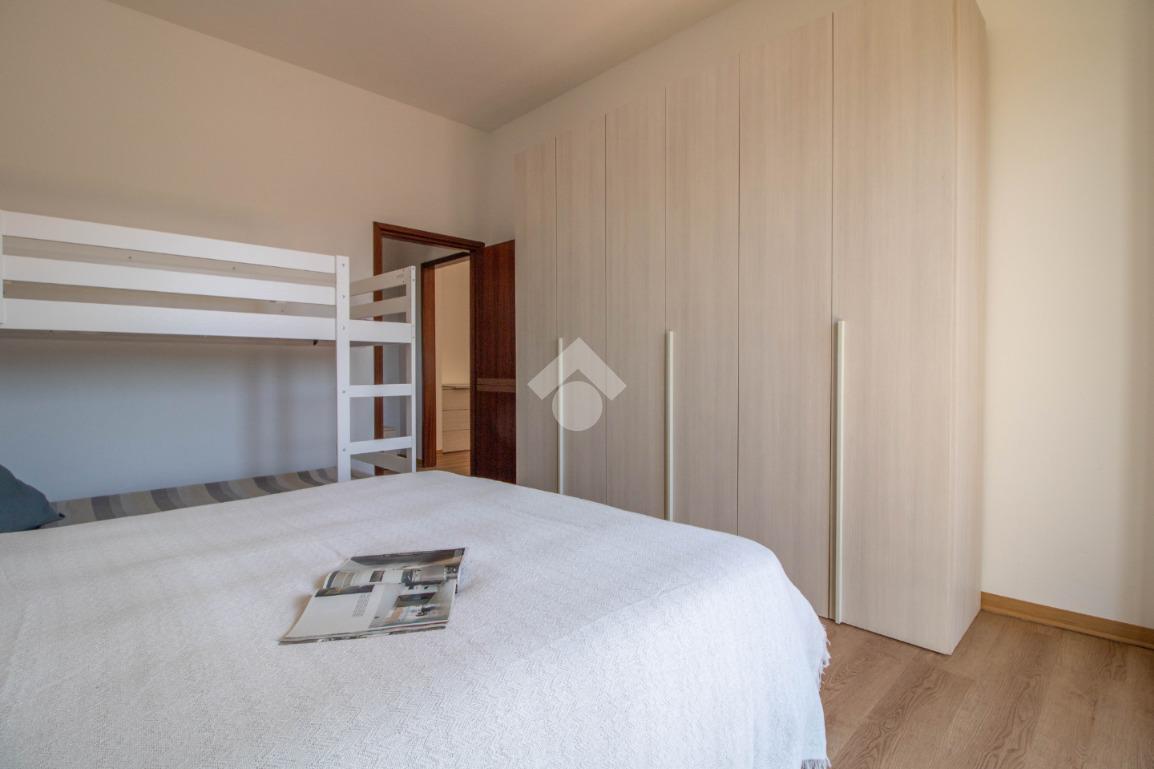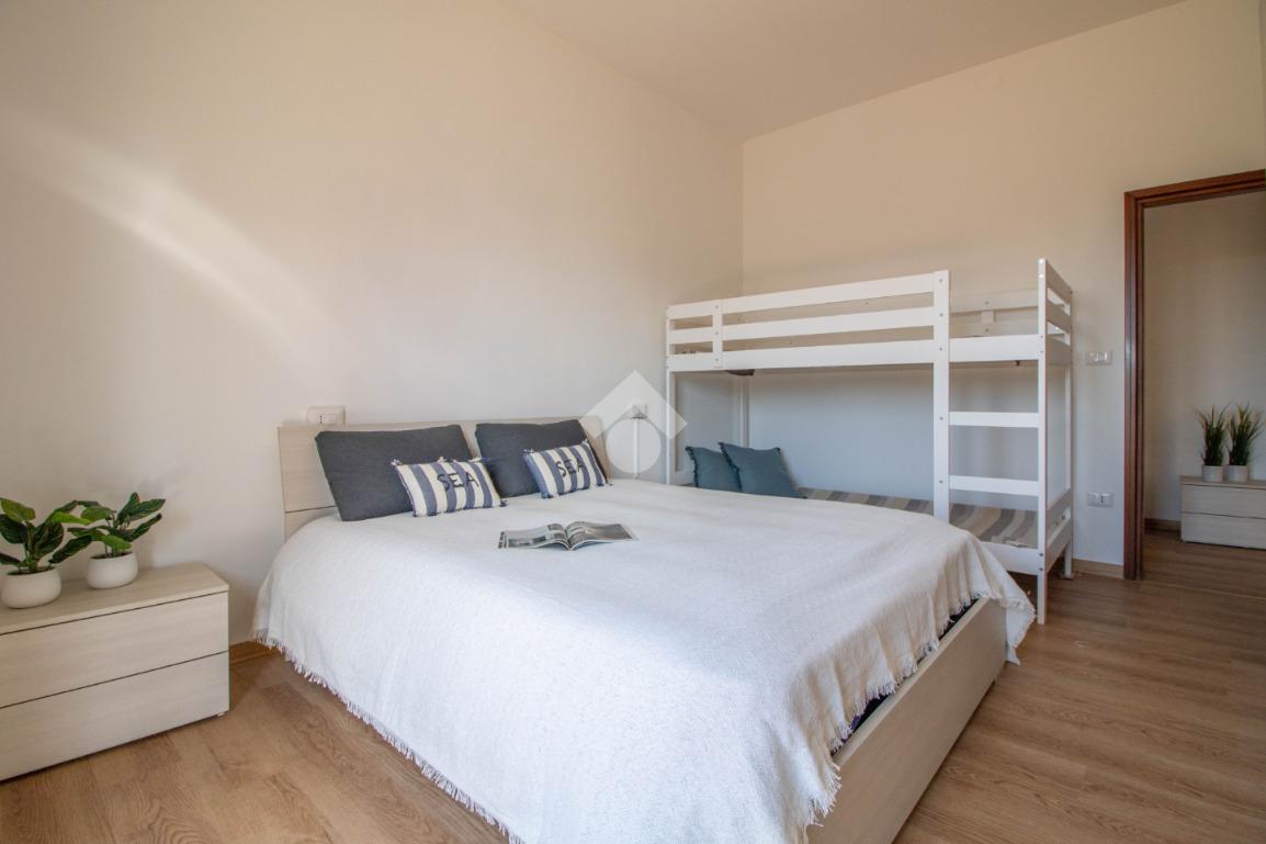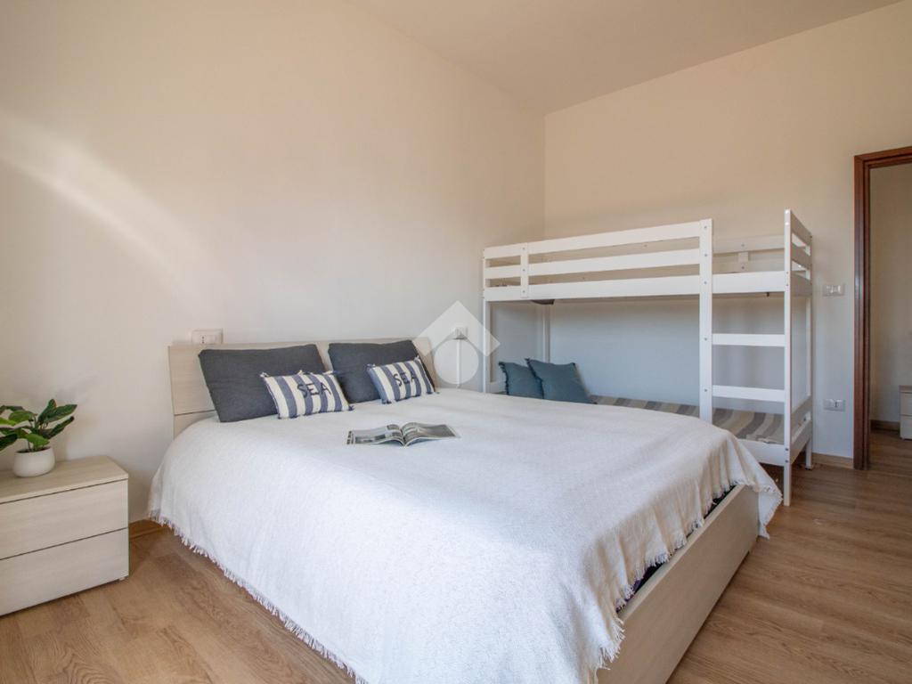 L'immobile è composto da ingresso su soggiorno, cucina, camera da letto matrimoniale con letto a castello e bagno finestrato con box doccia.